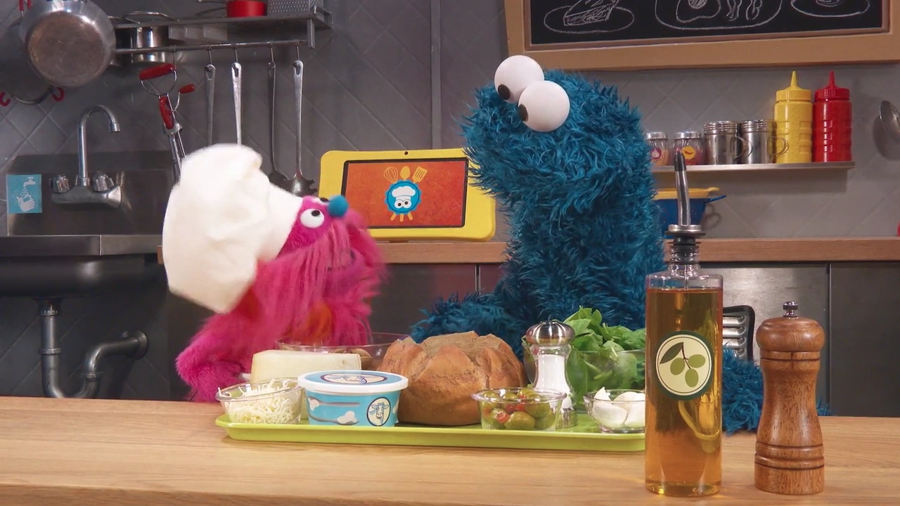 Muppets | Cookie Monster's Foodie Truck A young girl orders a dinosaur-themed snack while she and her sister play pretend paleontologists. Gonger comes up with a "dino dip" recipe, but they're missing one ingredient - an artichoke. Cookie Monster claims to have mistaken it for a baby porcupine and gave it to a live one, meaning they have to go visit the artichoke farm to get another. |