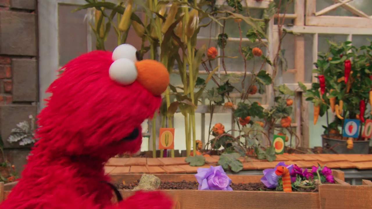 SCENE 2 | Elmo does some scientific investigations in the garden and finds a rock, flower, and even Slimey. |