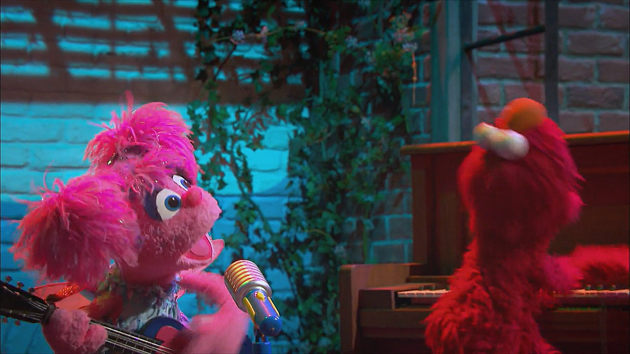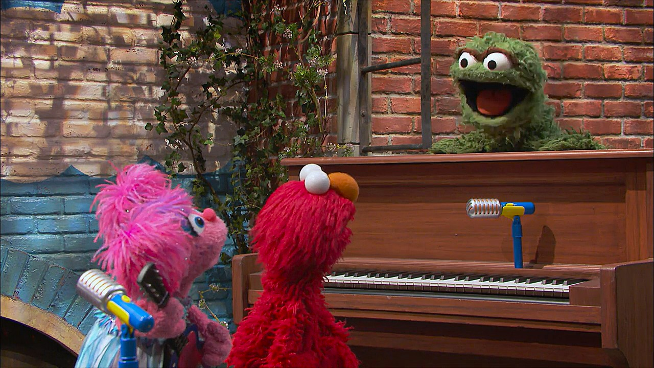 SCENE | Elmo and Abby have formed "The Best Friends Band" and are going to play "Twinkle Twinkle Little Star" together, only the end result comes out awful (though beautiful to Oscar). They blame each other for playing incorrectly and start arguing, which Oscar also enjoys. Chris comes by and has them play their parts separately to see where the issue is. They find Elmo is playing fast and Abby is playing slow; the two decide to break up the band and piano mover Grover takes away Elmo's piano. Chris convinces them to compromise and find a tempo they can play together. Grover brings the piano back as they play "Twinkle Twinkle" together, sounding much better (to Oscar's chagrin). |