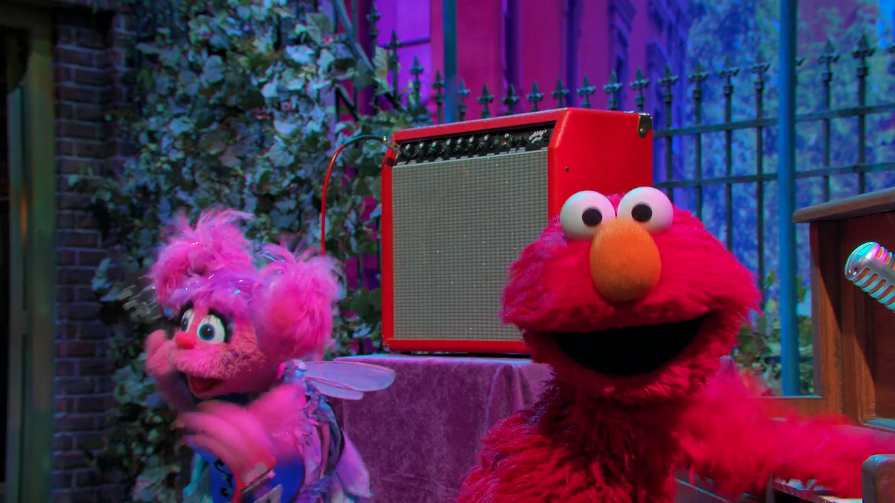 SCENE cont'd | Now, the two start playing "The Alphabet Song," but it doesn't sound right again. They argue over who's fault it is, when Chris notes the issue is the dynamics of their playing; Elmo is soft and Abby is loud. They are about to break up again, when Chris tells them to compromise once more. They agree to change their dynamics and play a rockin' version of the song. |