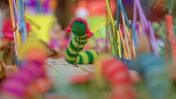 SCENE 1 cont'd | The bridge is long enough, but before Frankie can go on it, they must conduct a safety test using a toy truck. The bridge passes, and Frankie uses it to successfully visit her cousins. The worms are then asked what they like to play together. The worms say they like to play music, and they put on a show. |
