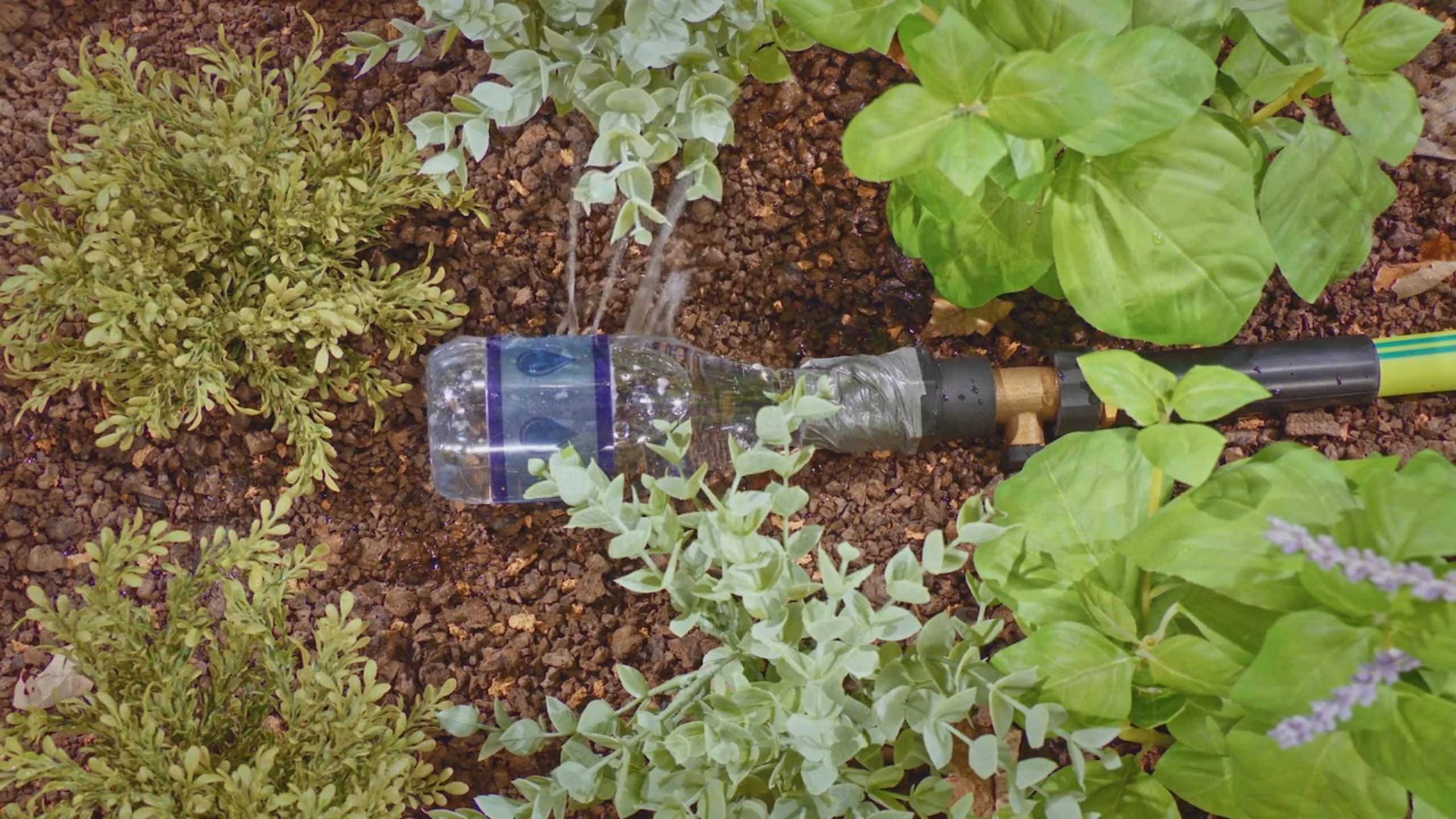 Insert | I Wonder, What If, Let's Try Xenia and Kolby are keeping their plants watered while they're away in different ways. Kolby shows his contraption with cotton strings to suck water from a pot of water into each plant. Xenia shows hers, with a plastic water bottle stuck in the dirt. |