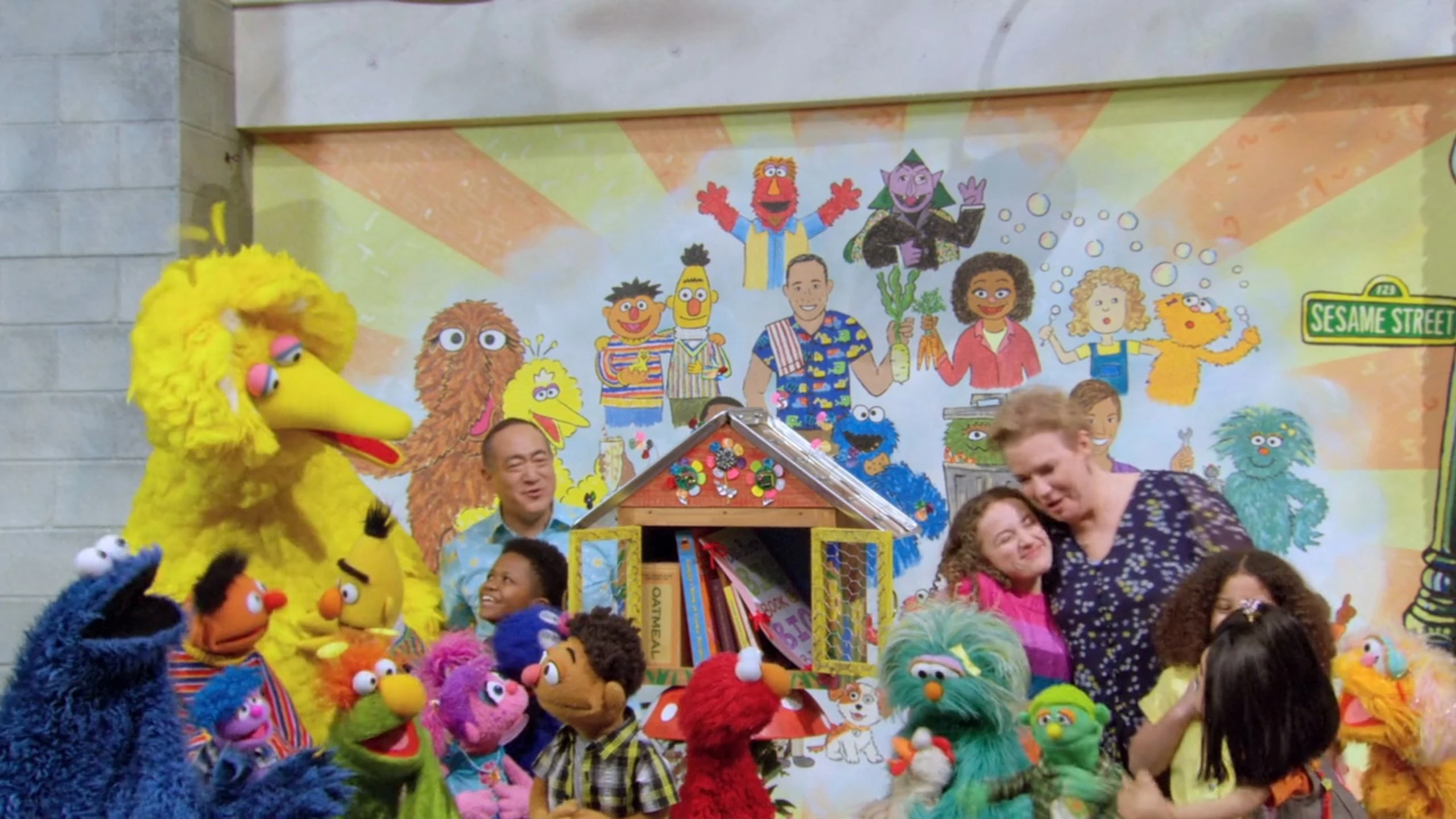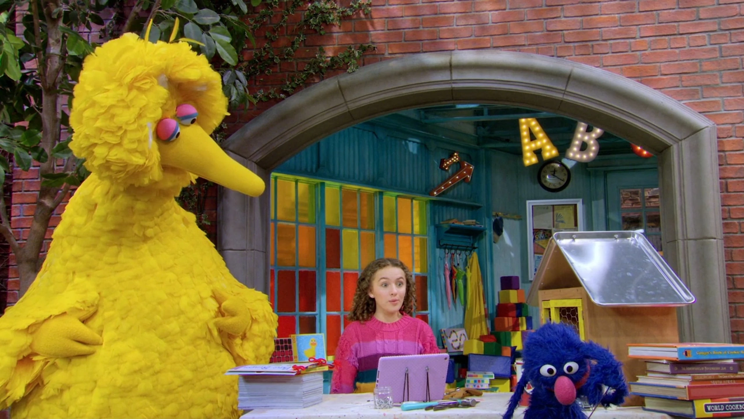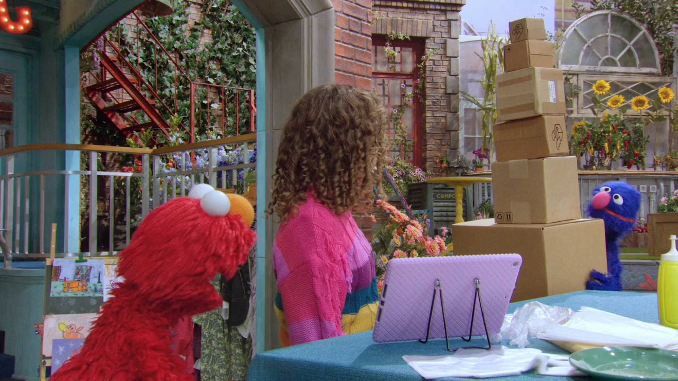 SCENE 1 | Elmo notices that his neighbors are being especially helpful today, and Charlie explains that it's because today is Mitzvah Day at their synagogue. Charlie explains a synagogue to be a temple where Jewish families like hers pray, learn, and celebrate Jewish holidays. Meredith is packing lunches for everyone and explains that a mitzvah is an act of kindness, and Charlie explains that Mitzvah Day is a day for everyone in the synagogue to help each other out on Sesame Street. When Meredith leaves, Charlie shows Elmo her Mitzvah Day project: a little library, to help the neighborhood share books as a way to make the world a kinder place. Charlie explains that she ordered a kit to build one, but it has yet to come in the mail. |