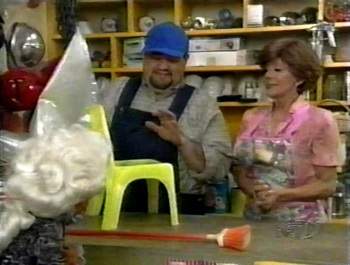 SCENE | A toupee-wearing Multimonstruo hosts a game show where the contestants bring their best surprises. A girl first gives him a spring-loaded can of snakes. Neftalí then appears and performs a surprising trick - pulling Lola (as a rabbit) from his hat. The final surprise comes from Barón Púrpura, who lands his plane into the studio. |
