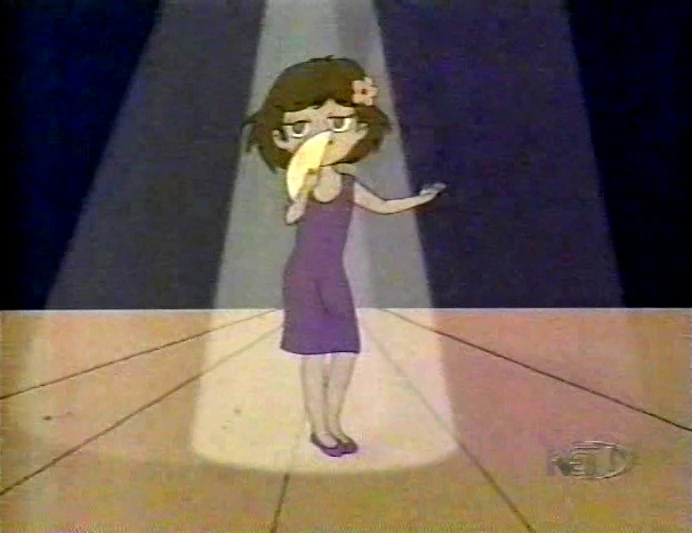 Cartoon | A woman dances to bolero music. |
