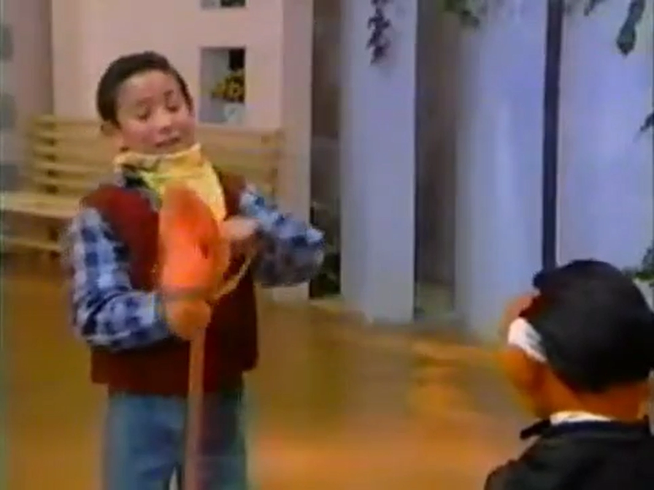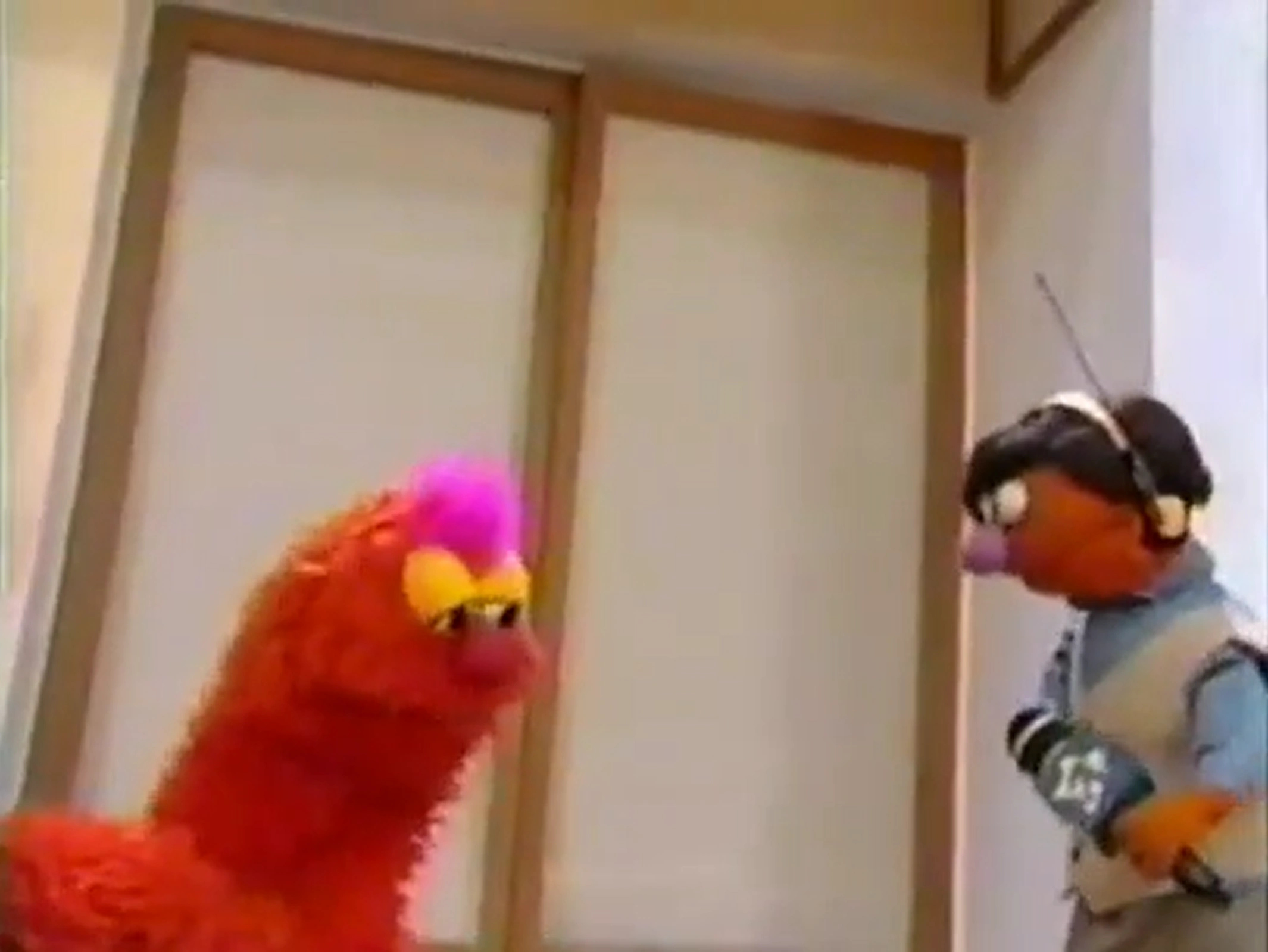Muppets | Baby Bear comes back with another red crayon, but notices that Elmo is wearing a doctor's outfit. He's wearing them because he wants to be a doctor when he grows up, and he wants to be drawn that way now (he got the props while Baby Bear was getting the crayon). Once again, Elmo changes his mind at the last second, and runs off. He comes back dressed as a fireman, then changes his mind again and decides to be drawn as himself. Baby Bear gives up, not believing Elmo will hold still. (EKA: Episodio 731) Taken from episode 3410 of Sesame Street. |