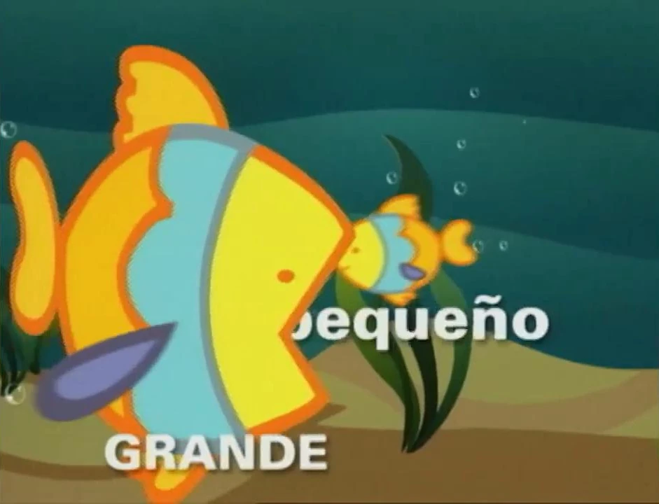 Cartoon | Fish that are pequeño (little) get eaten by fish that are grande (big). (EKA: Episodio 842) |