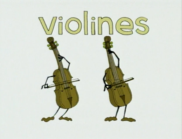 Cartoon | Two "violines" (violins) play themselves. |