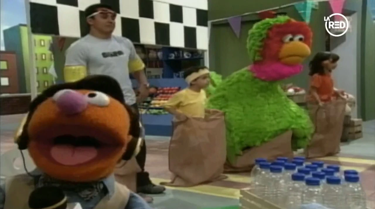 SCENE | The sack racing begins between Daniela, Manuel, Abelardo and Fernando Platas. However, Manuel has a hard time jumping in his sack and loses, making him throw a fit and storm off. His sister and Fernando Platas comfort him. |