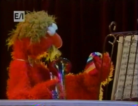 SCENE | A Multimonstruo trumpet player holds a concert (which La Abuela and Lola attend). However, when he blows his trumpet, not sound comes out. He looks inside and finds the usher's sock, La Abuela's glasses and Lola's pet cat. |