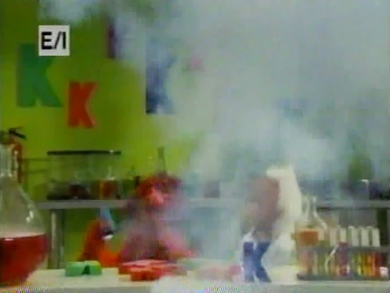 Muppets | A Multimuppet scientist and his Multimonstruo assistant show off his new invention - a can that when shaken up releases a letter K. The monster names various K words as the Ks fly out, but she shakes it so much she causes a "KABOOM"! |