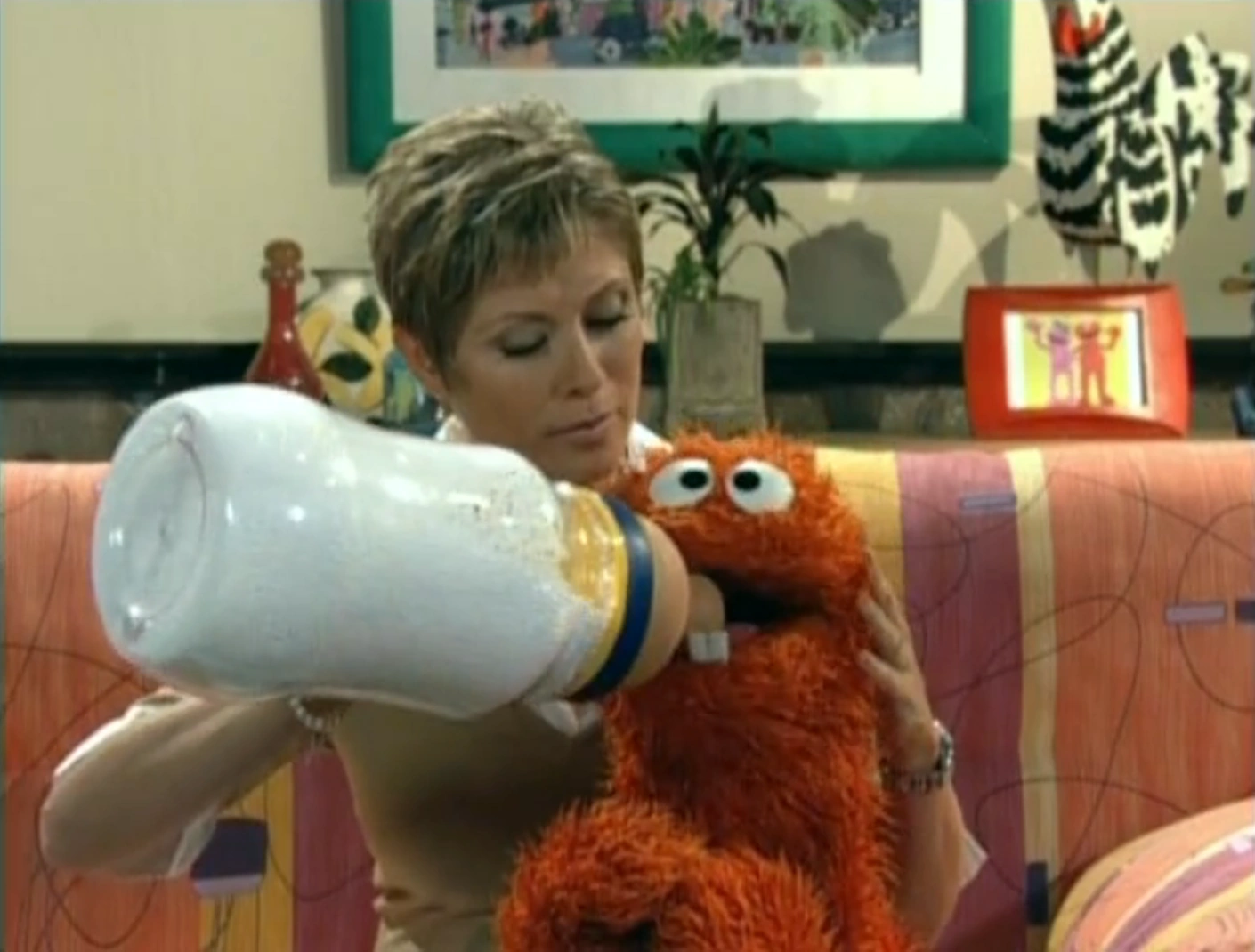 Insert | Leticia Calderon and a baby monster explain the importance of milk. |