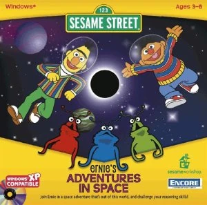 Ernie's Adventures in Space is a Sesame Street CD-ROM game for home computers. The game was developed by The Learning Company in 2000 and re-released by Encore Software and Sesame Workshop in 2005. Ernie is the user's guide on an exploration of space and the stars. Bert, Cookie Monster, Zoe, "Astro" Grover, Count von Count, and Oscar the Grouch also appear. The game teaches skills such as critical thinking and problem solving using 5 activities and 2 skill levels.