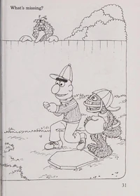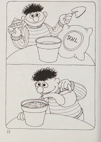 Ernie's Finish the Picture is a 1985 Sesame Street coloring book. The book encourages readers to add drawings to the book, through the use of "connect the dot" images or blank spaces allowing the reader the artistic freedom to add whatever they please.