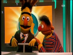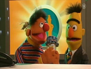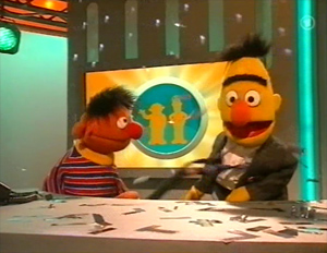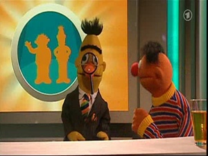 In these unique German skits, Ernie (puppeteered and voiced by Martin Paas) and Bert (Carsten Morar-Haffke) appear in a game show, with Bert as host and Ernie as contestant.