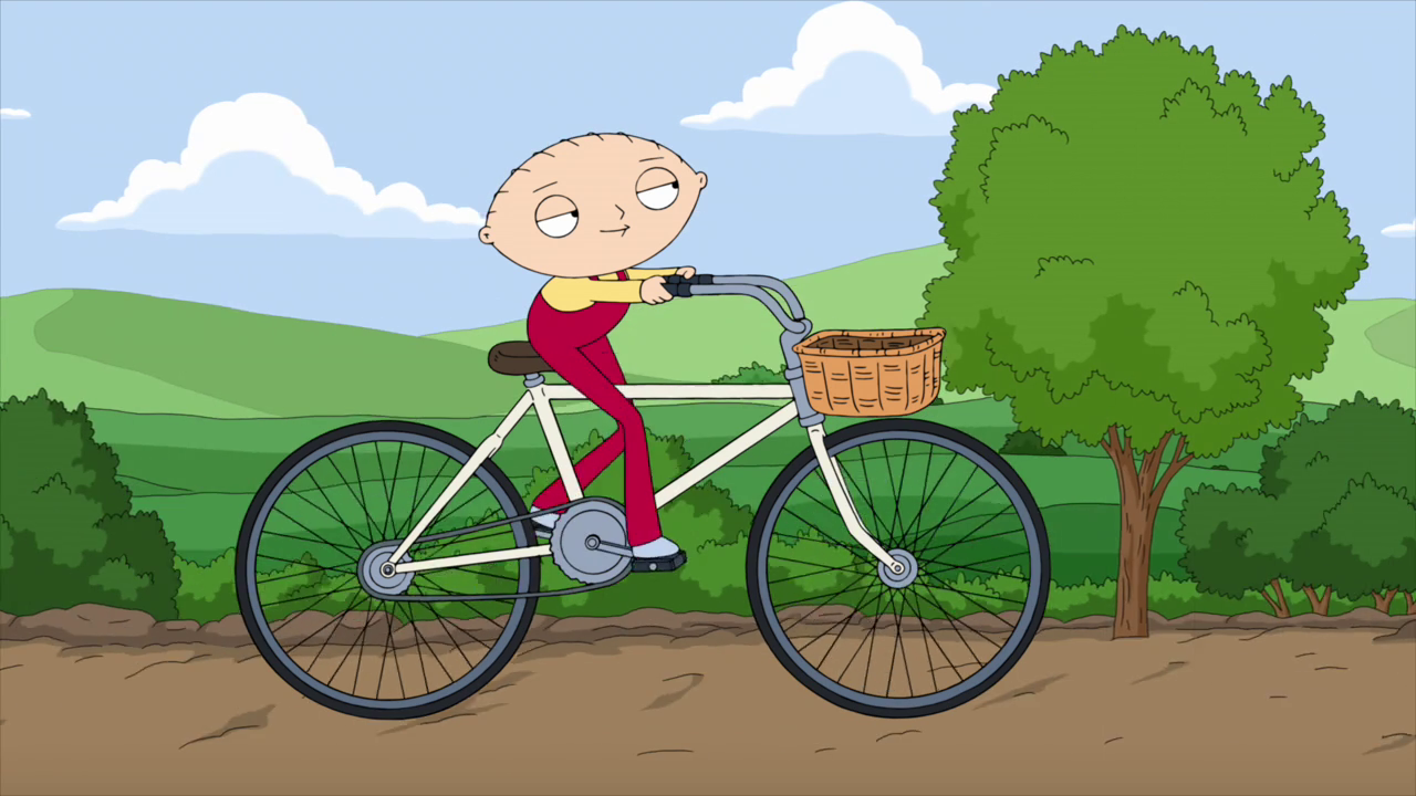 "Chap Stewie" Stewie has faced bigger challenges than breaking up Peter and Lois, like riding a bike in The Muppet Movie. He then states, "This is amazing to everyone in the '70s." |