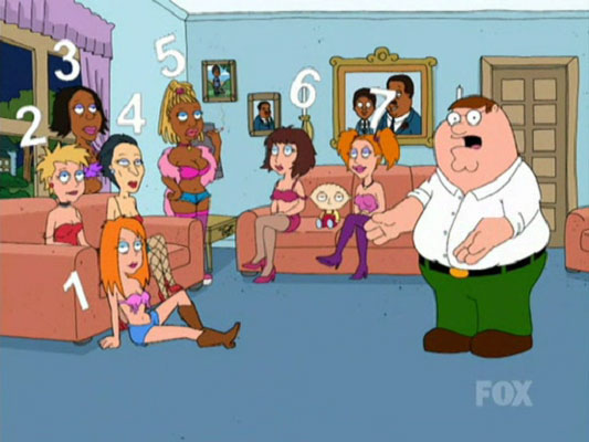 "Petarded" While staying at Cleveland's house, Peter brings over prostitutes. He shows Cleveland, in another reference to the Number Song Series, seven prostitutes as they are being counted by a children's chorus from off-screen. |