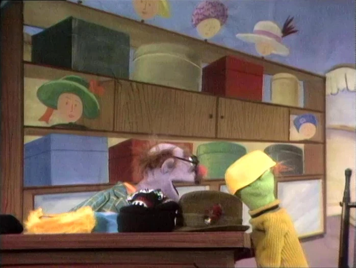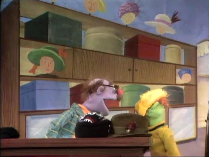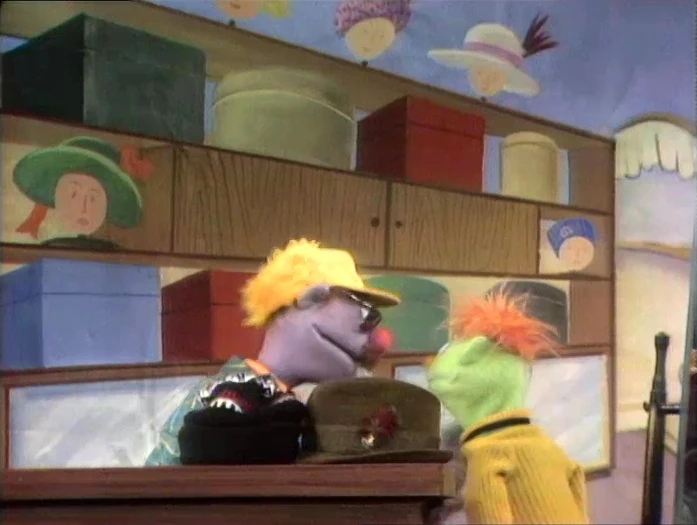 Two flawless takes of the Farley goes to the hat shop sketch were shot on the same day, and both takes have appeared in Sesame Street episodes. Both takes are presented here in transcripted form to give the reader a glimpse of the spontaneity which occurs during the taping of an average Muppet sketch. They also showcase the performers' improvisational skills.