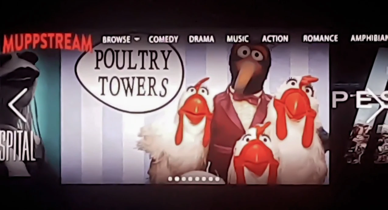 - A Netflix spoof called "Muppstream" shown at The Muppets Take the O2 featured Muppet versions of several popular TV shows. "Poultry Towers" spoofed Fawlty Towers, while showing Gonzo and the chickens.