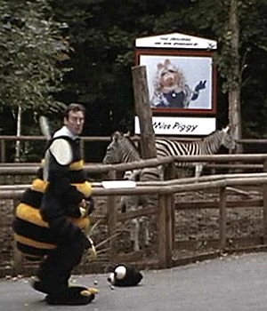 Fierce Creatures is a 1997 comedy film intended as a follow-up to the 1988 movie A Fish Called Wanda, with the same four stars: John Cleese, Jamie Lee Curtis, Kevin Kline, and Michael Palin. The plot centers on the fictional Marwood Zoo in England, which is taken over by the Octopus corporation. After a strict "fierce animals policy" fails, Vince McCain (Kline) devises corporate and celebrity sponsorships of specific animals, using the likenesses of Bruce Springsteen and Steve Martin, among others. A billboard display of Miss Piggy graces the zebra pavilion, though no precise rationale is given within the film. Piggy can be seen most clearly during the frantic sequence following an accidental shooting.