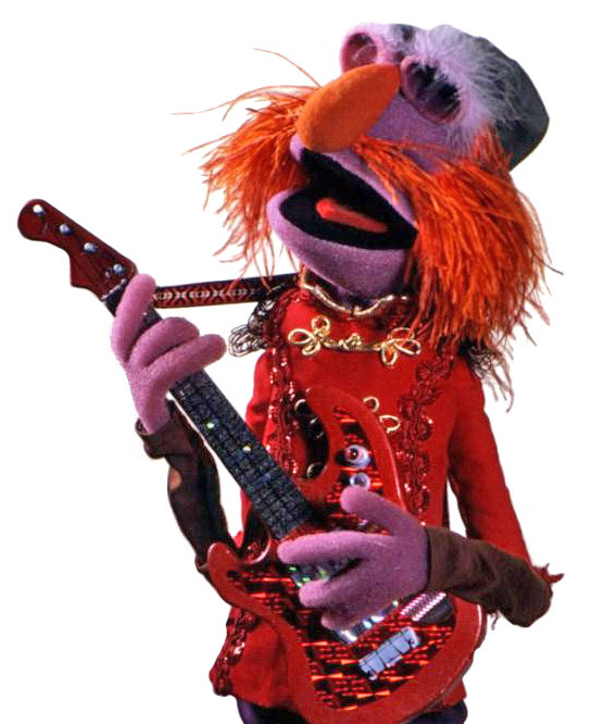 Floyd Pepper is the bass player for the Electric Mayhem band on The Muppet Show. He first appeared in the 1975 pilot The Muppet Show: Sex and Violence. One of the more vocal band members, Floyd's hip sarcasm is often directed at other Muppet Show regulars, particularly Miss Piggy. Frequently paired with Janice, Floyd also has a certain influence on Animal, or at least as much as anyone can. In picture books such as The Case of the Missing Mother, or certain installments of the Muppet comic strip, Floyd is practically Animal's keeper, pulling his chain and looking after him. The Muppets Mayhem episode "Exile on Main Street" reveals that he had been Animal's guardian since Animal had been left on his doorstep as a baby.