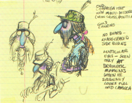 His original outfit was a suit similar to the ones worn by The Beatles on their album "Sgt. Pepper's Lonely Hearts Club Band", along with a green hat, though he sometimes wore the Muppet Show's signature purple tux as well.