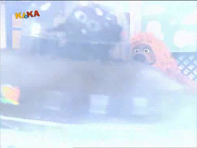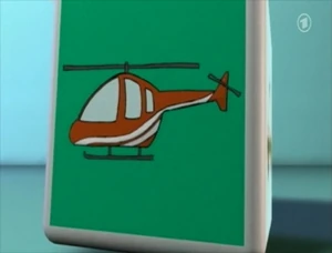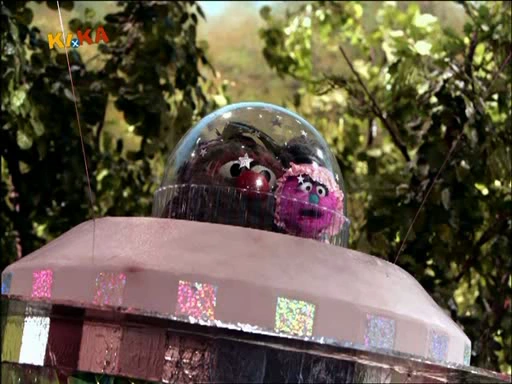 Samson rushes into Nils' shop, trying to explain what he just saw. It looked like a little flying submarine with rockets and it made loud noises. Nils tells him that it sounds like he saw a UFO. Nils continues to explain what a UFO is. Samson asks Nils if he really thinks a UFO would fly around Sesamstrasse. Nils is not sure, as he never saw it. |