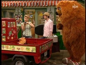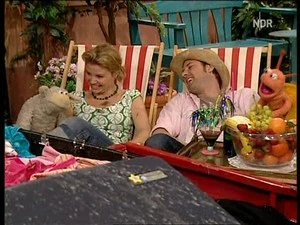 Scene | It's a warm summer day on Sesamstrasse and Samson decides to go over to the store to ask Nils something. Meanwhile, Annette and Nils are carrying suitcases out to the car. Samson tries to ask Nils a question, but Nils tells him that they are in a hurry; they are going to catch a plane to Majorca, where they are going to spend their summer holiday. Samson tells Nils that he only wanted to ask if he could borrow a fan, and Nils hurries into the shop to get it and tells Samson to help Annette with the bags. Nils returns with the fan and they drive off. But they end up driving over a nail in the street, and get a flat tire. |