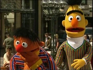 Cold opening | Ernie throws away his banana peel on the street. Bert tells him that he can't do that and that someone can step on it and slip. Ernie don't think anyone could do something so stupid and then slips on the peel. Afterwards Bert tells Ernie that apparently he are. |