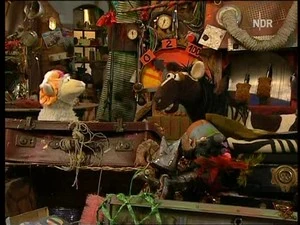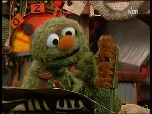 Detective Wolle can't tell which one's the original Karl Heinz, so he decides to ask them. Unfortunately, he doesn't get an answer from the inanimate objects. Then Pferd notices that Rumpel is on his way back, so they try to hide, along with the two copies of Karl Heinz. Rumpel quickly notices them and asks what they were doing. Neither one can answer, as both have a brush in their mouths. Rumpel notices that Karl Heinz is missing, and goes on a search for him.