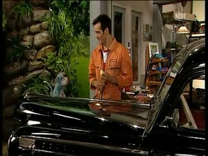 Scene | Mehmet and Manni are looking under the hood of the car, trying to figure out what's wrong. They think it might be that some of the cables are not correctly connected. As Mehmet attmpts to fix it, Manni warns him that the buyer is on his way. Manni volunteers to fix the cables while Mehmet talks with the buyer. |