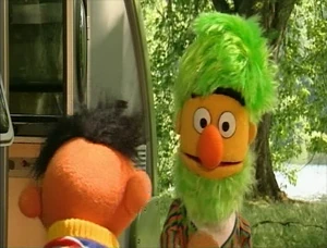 Bert is making noises inside the caravan. Ernie informs the viewer that his good friend Bert has dyed his hair red by mistake and that he refuses to come out. Ernie then helps Bert to hide the red hair. Bert ends up getting covered in green hair; that way, no one would notice the red hair. The Wolf vom WΓΆrtersee comes by thinking Bert is his brother, and takes him out for a swim.