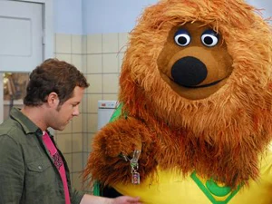 Scene | Pferd and Wolle come by and are impressed with how strong Super Samson is. Wolle thinks it could be fun to be a super hero. Pferd agrees and they ask Super Samson for advice. Super Samson agrees to help them; after all, there's no one to rescue at the moment. |