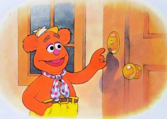 Fozzie rings Kermit's doorbell