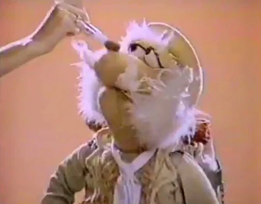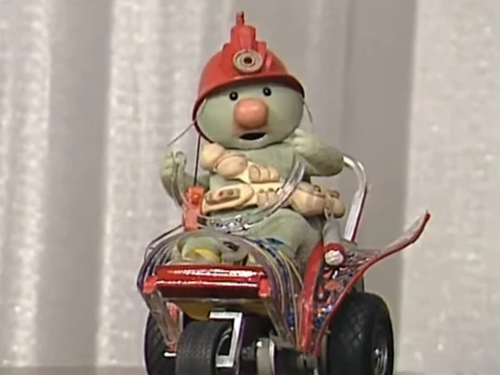 A Doozer (Jim Henson) appeared in promos for airings of Fraggle Rock on Children's ITV. Mike Quinn served as an assistant puppeteer on the shoot. (outtakes) |