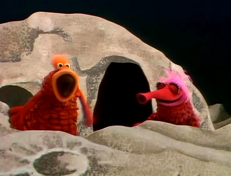 The male Koozebanian presents himself to the amused female in The Muppets Valentine Show.