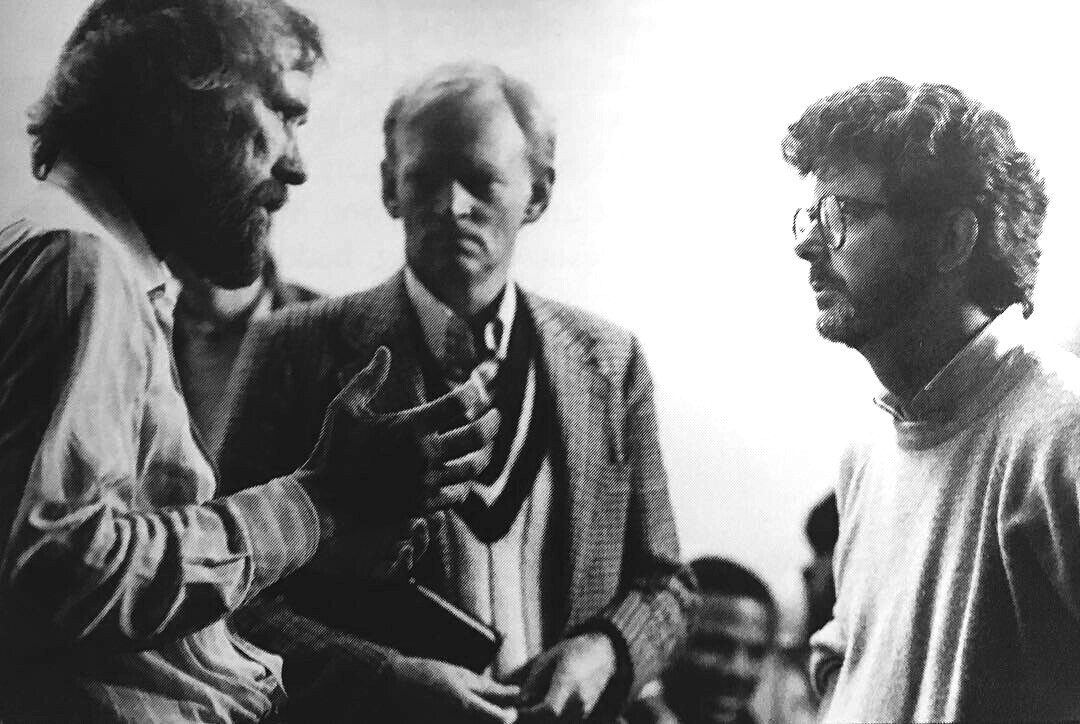 Jim Henson with Robert Watts and George Lucas on the set of Labyrinth.
