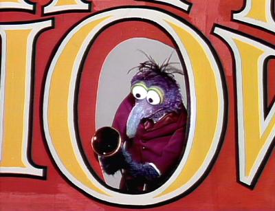 Gonzo had a prominent part at the start of each Muppet Show episode, playing the final trumpet note of the opening theme. In each episode, something different would happen -- for example, the trumpet would explode, or spray water, or blow up a balloon. In the first season, Gonzo did not use a trumpet but instead attempted to hit the white space within the "O" in the "Muppet Show" sign like a gong, usually with bad results.