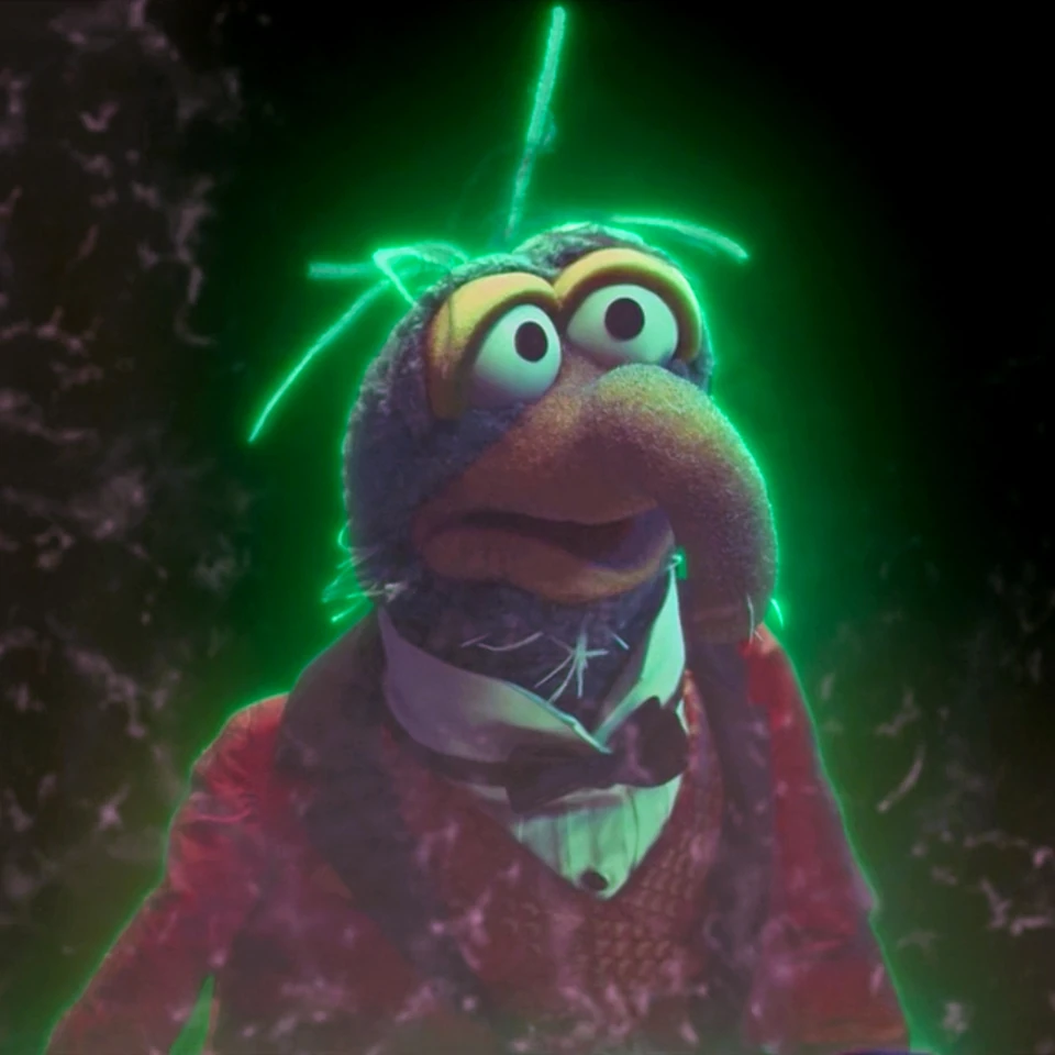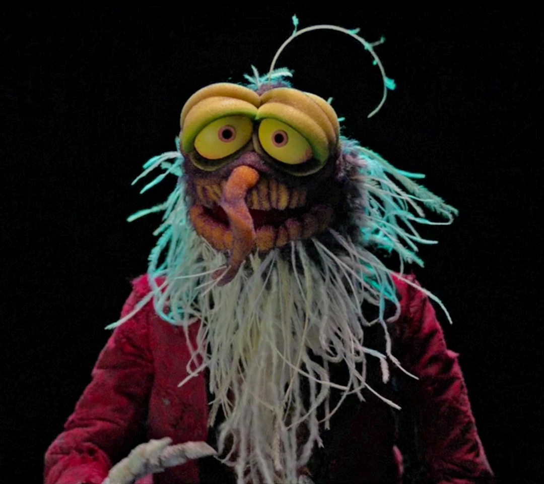 Gonzo faces his biggest fear and starts to turn old in Room 999 of the Haunted Mansion. Three different aged versions of the Gonzo puppet appear, with his hair getting more wild, a beard growing and each getting more elderly and decrepit as he ages. |