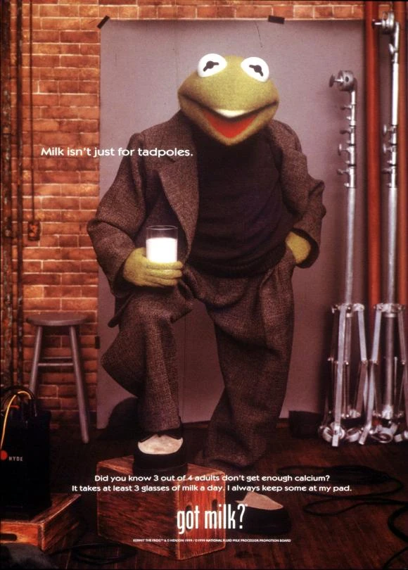 - Miss Piggy parodied the Got Milk? ads with "Cake" in the Muppet Parody Calendar: The Sequel in 1997.