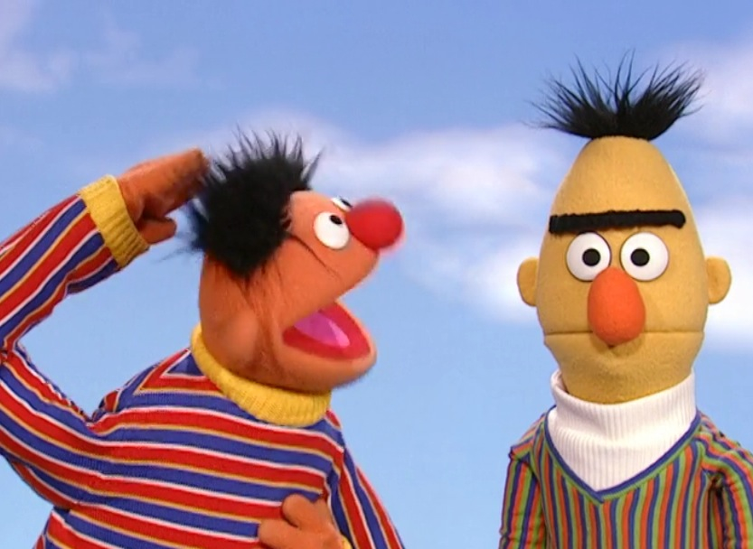 Muppets | Ernie and Bert: Copycat Game β Ernie repeats everything Bert says and does. |
