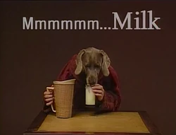 Film | Chundo, one of Wegman's dogs, drinks milk from a glass. (First: Episode 3545) (new sound effects added) |