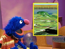 FRAME 3 | Grover reveals that he's always dreamt of jumping over the moon, like the cow from "Hey Diddle Diddle," and now he finally feels the gusto to try it. He has the viewers jump to the moon with him, but they're unsuccessful. Grover thinks they can jump like a cow if they copy smaller animals first. Grover observes animals that he refers to as the "hopalong" (frog) and the "pouchiroo" (kangaroo), and he and the viewers imitate their jumping motions. Grover moves on to a real cow, which, to his frustration, doesn't jump at all. |