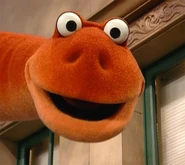 The puppet has since been recycled as Mr. Dinofella for episode 137 of The Furchester Hotel, and for the YouTube video "The Wheels on the Bus" Remix #3 in 2021. For the latter appearance, the puppet (performed by Peter Linz) was digitally recolored purple (including his tongue).