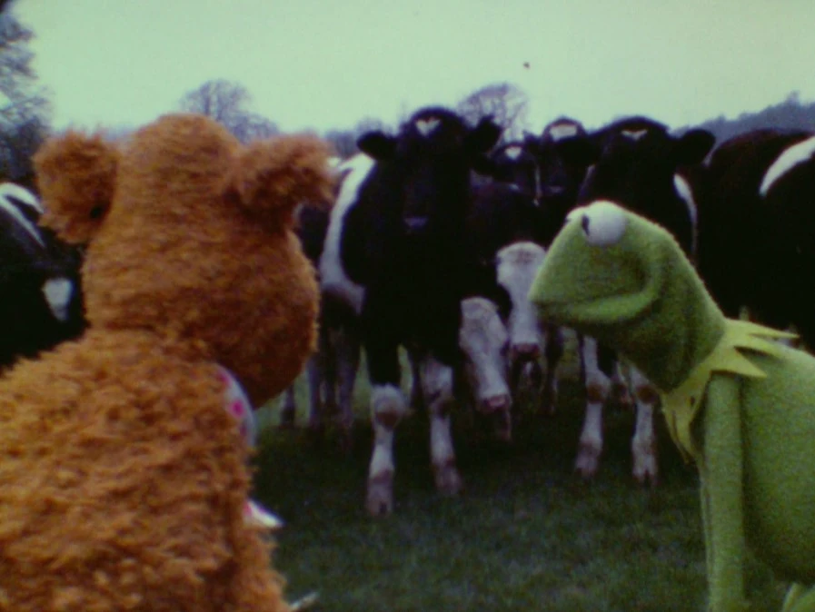 - Fozzie Bear attempts to tell the joke to an actual herd of cows in Jim Frawley's Camera Tests for The Muppet Movie (though he fumbles with the wording). He successfully pulls off the joke with Kermit the Frog in episode 322 of The Muppet Show. The two reuse the joke when setting up a clip of "Elegance" in Muppet Treasures.