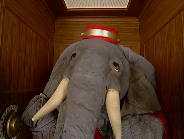 The Elephant appears in Elmo's quiz segment and sings a bit of "The Elephant Elevator Operator." |