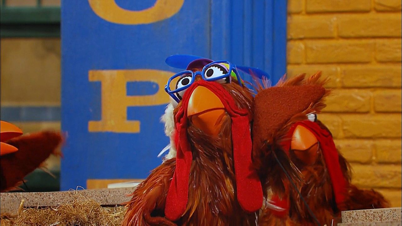 Elmo sings to a school of chickens about listening with one's whole body - ears hear, eyes watch, mouth is shut and the body is calm.