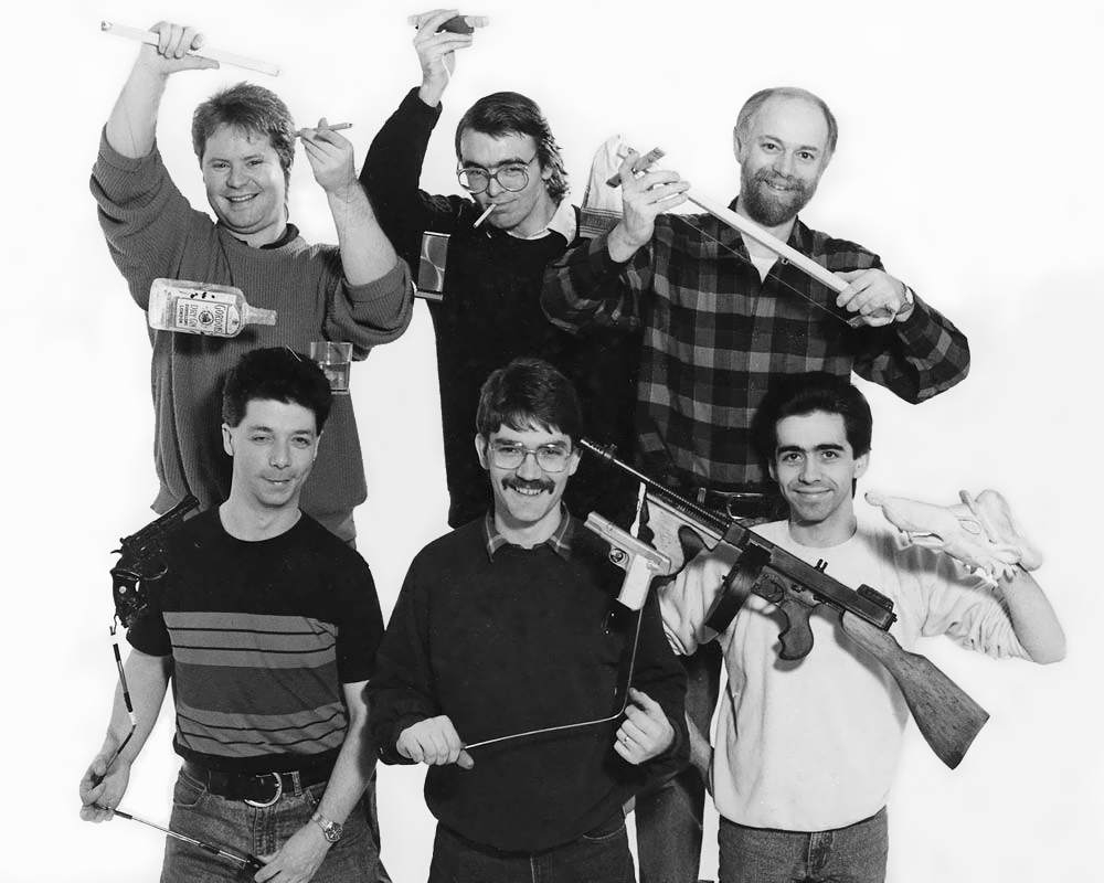 The puppet crew from Who Framed Roger Rabbit, 1988. Top row: Ian Tregonning, Toby Philpott, Christopher Leith. Bottom row: Geoff Felix, David Barclay, Mike Quinn.