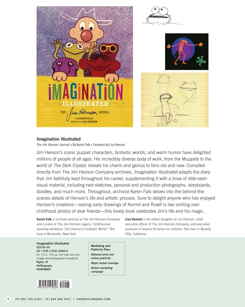 Imagination Illustrated: The Jim Henson Journal is a book based on Jim Henson's journals, edited by Henson Company archivist Karen Falk. The 192-page book was released on October 31, 2012 by Chronicle Books, and includes a foreword written by Lisa Henson.