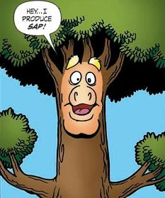 Guy Smiley disguises himself as a tree to surprise Oak Tree and salute its life. |